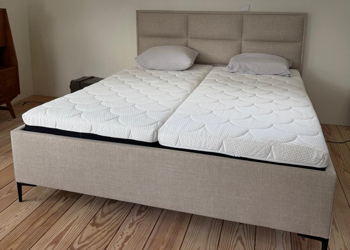 Samen bekijken we alle mogelijkheden: van stoffen en kleuren tot verschillende modellen. In de showroom kun je zelf de hardheden ervaren en het comfort van de topper/matras voelen. Zo stel je jouw ideale bed samen helemaal op maat. Hieronder een aantal kiekjes uit de slaapkamer.