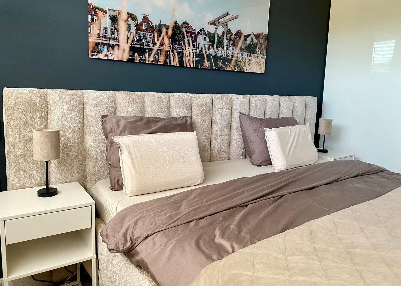 Deze parel zweeft op het water van de Prinsengracht, een prachtig, gestoffeerd ledikant dat je volledig kunt samenstellen naar jouw smaak.